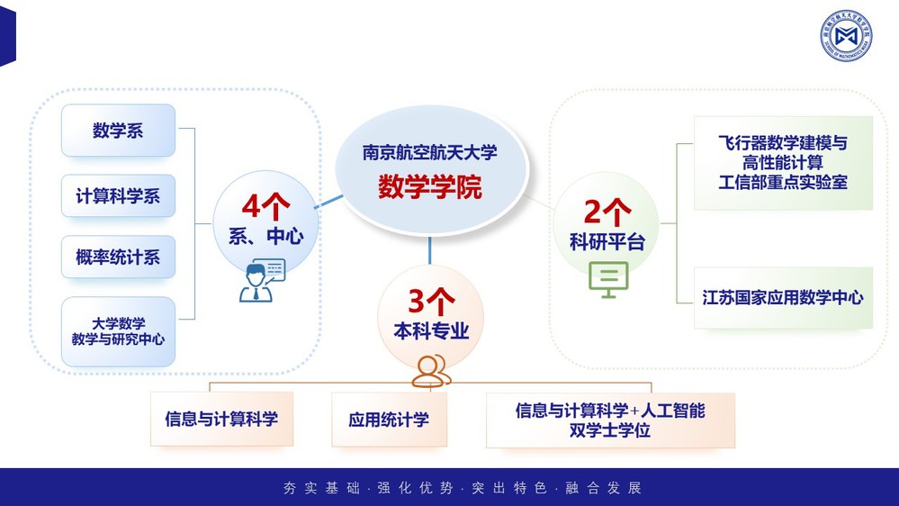 学院瞄准国际前沿,坚持开展面向国家需求的应用数学研究,在数论、算子代数、偏微分方程、数值分析、最优化理论与应用、图论、概率统计、动力系统理论及其应用等领域形成了稳定的研究方向和学术梯队。目前建有 “飞行器数学建模与高性能计算”工业和信息化部重点实验室。学院同时是江苏国家应用数学中心主要参与单位。近三年,学院教师承担了国家重点研发计划青年科学家项目、国家自然科学基金重点项目、gf项目等各类省部级以上项目百余项、横向项目30余项。发表高水平学术论文400多篇,获教育部自然科学二等奖等省部级科研成果奖6项,授权发明专利10多项。