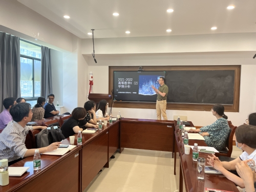 蒋建林感谢各个学院的大力配合与支持,充分肯定了高等数学教学团队的工作,勉励教学团队要在丰富课程内容上下功夫、在创新教学方法上下功夫、在打磨精品课程上下功夫,充分发挥基础教学组织的主体作用。