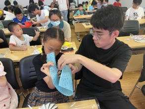 揭牌仪式结束后,“爱益科普”团队面向西善花苑社区的儿童开展了一场生动有趣的科普活动。团队同学通过知识讲解、共同动手实验等形式,让社区的儿童在锻炼动手能力的同时,也培养了对科学知识的兴趣。