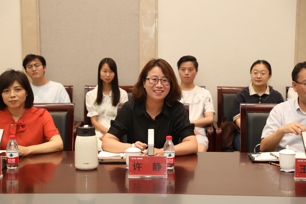 为深入贯彻党中央、国务院关于高校毕业生就业工作的决策部署,落实访企拓岗促就业专项行动,全力促进毕业生高质量就业,7月15日下午,数学学院赴中国电子科技集团公司第二十八研究所开展走访调研,进一步拓宽学生实习就业渠道,推进产教融合校企协同育人。学院党委书记许静、院长王春武带队,学院党委副书记周佼佼、副院长徐江、院长助理龚跃政及师生代表一行近20人参加了本次调研。中国电科集团首席专家,我校89届校友梁维泰、二十八所人力资源部副主任蒋冠群、国防重点实验室党支部书记闫晶晶,及校友代表物资采购处主任陈福玉、联合保障系统研究部党支部书记贺婷、保密办公室副主任姚馨共同参加座谈交流。
