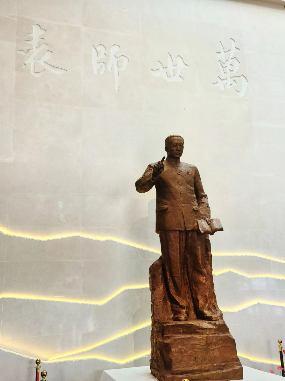 陶行知纪念馆馆长带领大家共同瞻仰了陶行知先生雕塑。在师德教育馆,何馆长讲述了陶行知先生为人民的教育事业奉献终身、积极投身革命运动的事迹。为了中国的教育事业,他是“为了苦孩,甘为骆驼;于人有益,牛马也做”;他在政治上求真,为革命培养了一大批优秀的学生。