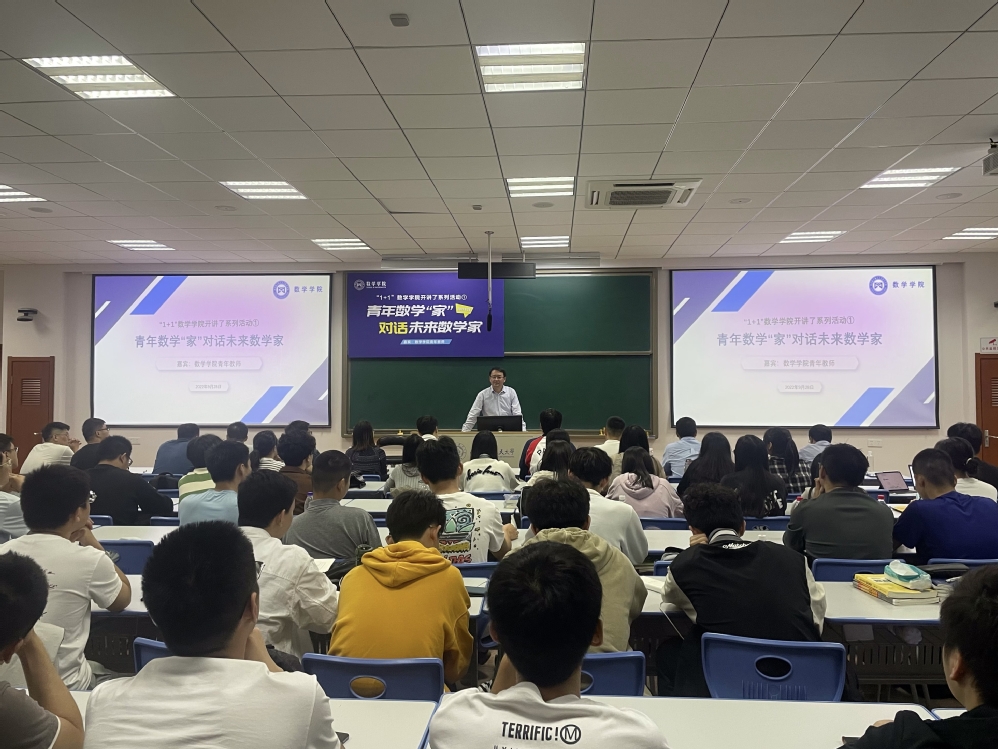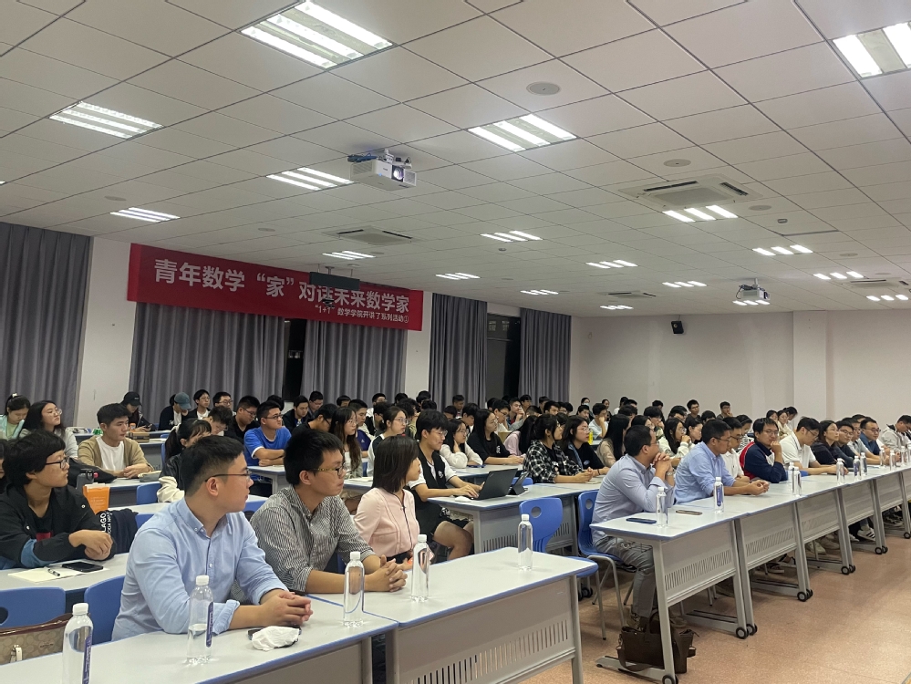 为增进青年教师与青年学子之间的交流,引领学生了解科研、投身科创,9月28日晚7点,英国上市365在5201举办了青年数学“家”对话未来数学家专题交流活动。学院青年数学“家”团队中10余位青年教师和三个年级100余名学生参加活动。院长王春武、党委副书记周佼佼、副院长蒋建林共同参加活动。活动由院长助理潘茂东、辅导员陈越主持。本次对话交流也是学院“1+1”英国上市365开讲了系列活动的首场活动。