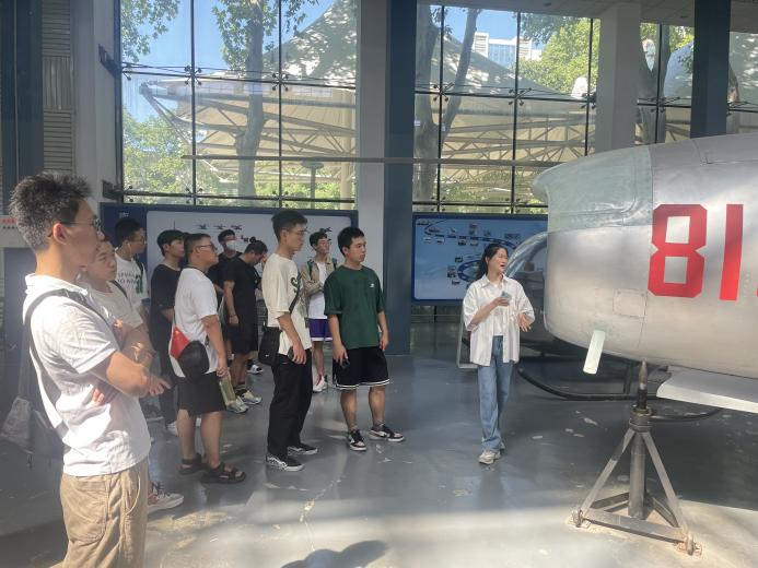 随后,同学们参观了航空航天馆。当场一个个飞机模型映入他们眼帘时,一声声惊呼声中,大家为翱翔蓝天的飞行器所深深吸引。一架架飞机以及直耸在场馆中央的火箭模型,每一件都让同学们感到热血沸腾。在讲解员的介绍下,同学们参观了每一架航空器,在惊叹不已的同时还学习到了很多关于飞行器的知识,不仅加深了同学们对于航空航天院校的理解和认识,更加激发了同学们航空报国的热情和信念。“效法羲和驭天马,志在长空牧群星”的种子在每一名预科同学心中种下。