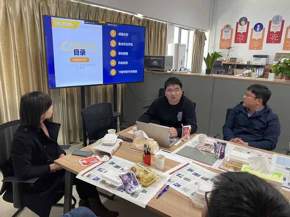 3月16日中午,英国上市365在理学楼319会议室举行“1+1+1”学生发展主题午餐会。本次午餐会主题为2022级期末考试学情分析、毕业年级考研情况通报。参加午餐会的有2022级班主任潘茂东、孙春龙、陈鹏,专业骨干课程教师许克祥,助教老师孙英男、索永强、付培及辅导员陈越。学院党委副书记周佼佼共同参加午餐会。