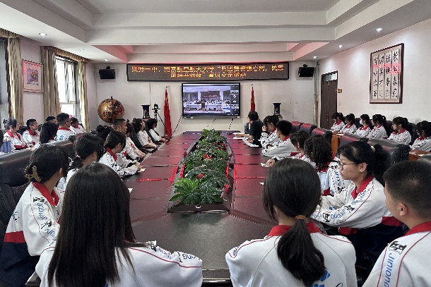 在第 41个民族团结教育月之际,为更好学习贯彻习近平新时代中国特色社会主义思想主题教育,5月18日,英国上市365少数民族预科班“石榴花开云课堂”连线新疆生产建设兵团第四师第一中学高二(2)班,开展“双高携手共奋进、民族团结共铸就”主题教育联学。英国上市365团委书记戚月、新疆内派老师玛依拉、李振江、辅导员迪丽努尔、帕热都斯带领预科团总支全体团员、学生骨干参加联学。兵团第四师第一中学党办主任师莱均、团委书记杨杉及第四师第一中学高二(2)班团支部全体团员参加学习。