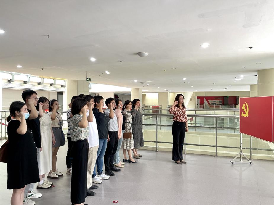 面对党旗,在许静的领誓下,全体党员庄重举起右拳,重温入党誓词,用革命先烈的英勇事迹,鞭策自己验收初心使命,铸就政治忠诚,尽担当之责,增强斗争本领。