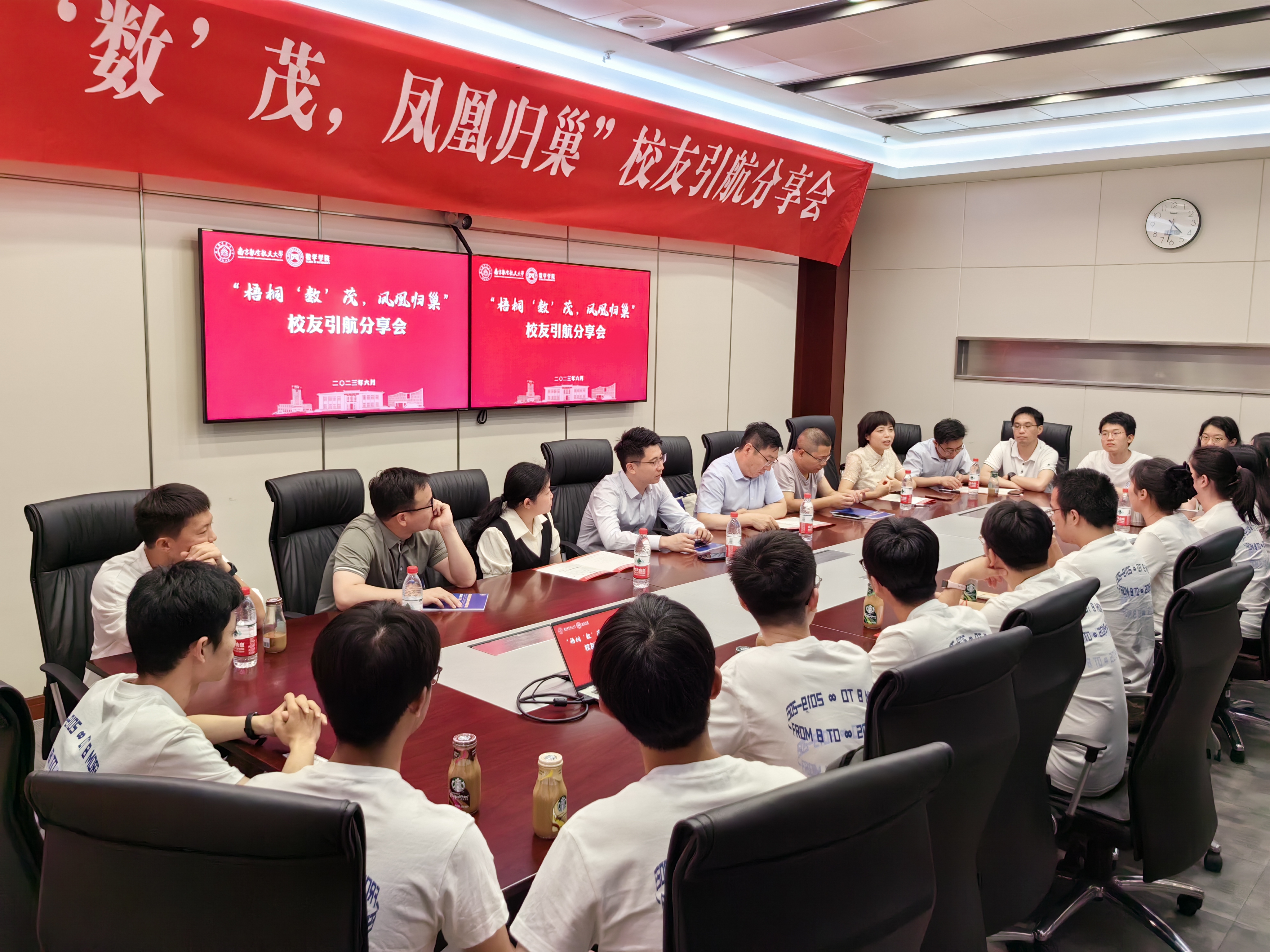 座谈会的同时,“梧桐‘数’茂,凤凰归巢”校友引航分享会在分会场召开。6名来自各行业的本科、研究生校友与30余名毕业生代表面对面交流,共话成长。校友们热情分享了在职业生涯和人生选择中的经历、经验,帮助学弟学妹们在从“大学生”向“职场人”转化的关键时期顺利走好第一步。毕业生们就个人学业、职业发展等问题向学长们请教,校友们一一进行耐心解答、指导,给出了宝贵的意见和建议。两个半小时的分享会气氛热烈,同学们收获满满。此外,30余名23届毕业同学以担任校友联系志愿者、会场志愿者等形式参与大会工作,在做服务中接受生动的毕业教育、校友教育。