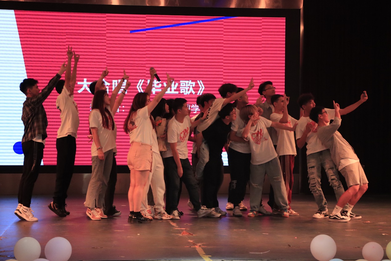 晚会最后,学校首届自行培养的预科生、首届本科毕业生、预科班副班主任陈晨带领全体同学大合唱《毕业歌》,同学们在歌声里表达着不舍和祝福。