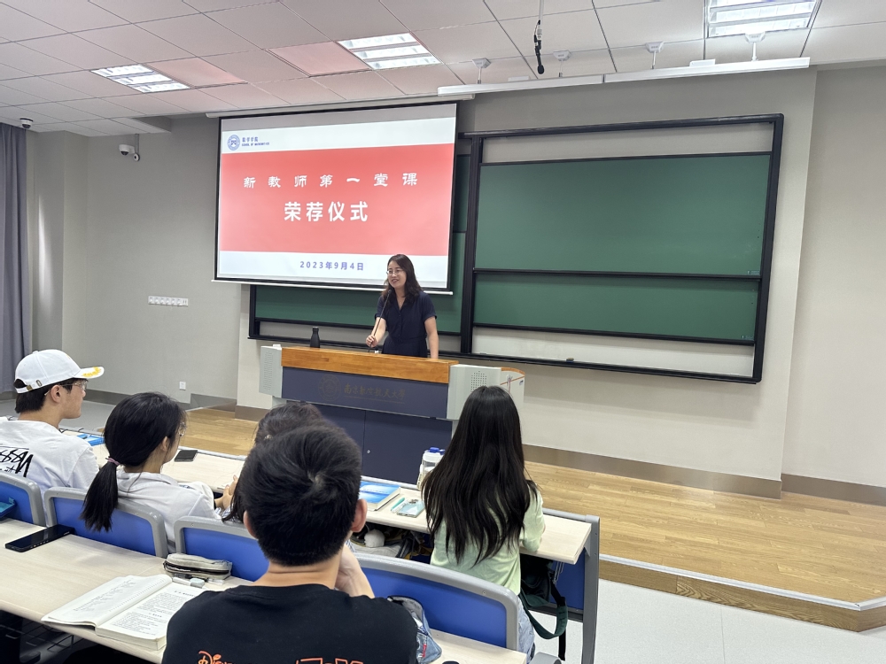 许静指出,为新教师第一堂课举行荣荐仪式,既是对新教师的鼓励,也是对教师们潜心教书育人的崇高敬意,让尊师重教在学院蔚然成风。同时对新教师提出三点期望,第一要拥有讲台敬畏感。“三尺讲台,一方黑板”是教师的责任田,第一课堂是教师的主阵地。希望索老师尽快完成角色转变,敬畏三尺讲台,用心用情做好教学教育工作。第二要秉持师者匠心。教学是一门学问,更是一门艺术,教师要认真研究教学之道,创新教学方法,丰富教学内容,在课堂上激活同学们的求知欲和创造力,在教学中追求卓越,努力做到尽善尽美。第三要共创从游态。教学就是师生间双向奔赴的热爱,教师要用自己的人格魅力感染学生、影响学生,让学生亲其师,信其道,尊其师,奉其教,敬其师,效其行,争做新时代“四有好老师”。