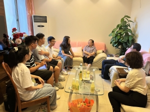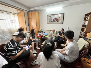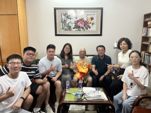 首先,学院一行人来到退休教师叶尔骅老师家中,与叶老师亲切交谈,叶老师深情回顾了学院数十年的发展历程以及60年代在学校从教的经历和趣事,他殷殷叮嘱几位同学:数学是一切科学技术的基础,做学术、搞研究一定要“坐得住冷板凳”,要静下心来踏踏实实搞学术,要打破学科壁垒,用“数学+”攻克技术难题,把基础研究向科技成果转移转化,为国家贡献数学力量。