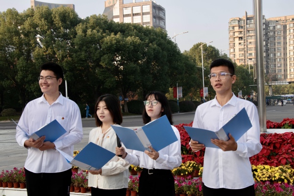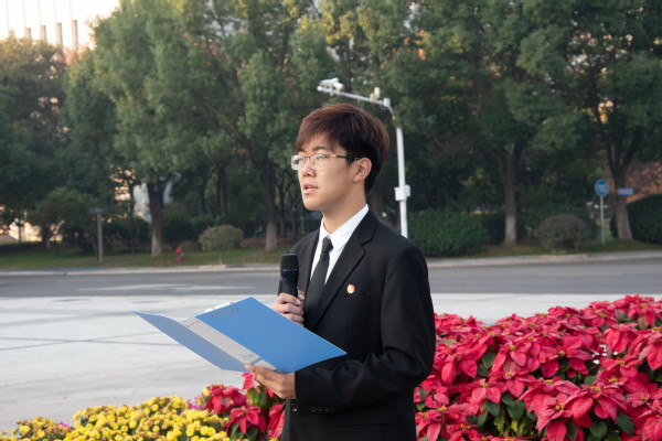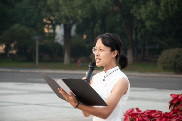 在国旗下,2023级本科生白宏滨和2023级预科生赵斌如作为新生代表发表了演讲。白宏滨以《数院学子同心向国,奋发有为辉耀时代》为主题,激励同学们传承爱国精神,勇于担当,努力学习,将燃烧的青春动力奉献在数学之上,为实现中华民族伟大复兴的中国梦贡献自己的力量。赵斌如以《石榴同心初振翼,乘风破浪向未来》为主题,分享了作为少数民族预科生初入南航的欣喜与激动,鼓励来自不同民族的同学们像石榴籽一样紧紧抱在一起,共同为国家繁荣和民族复兴努力奋斗。