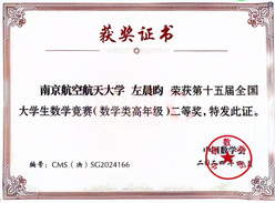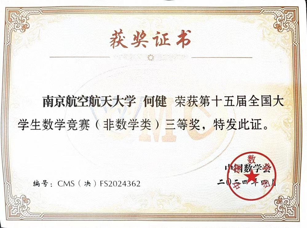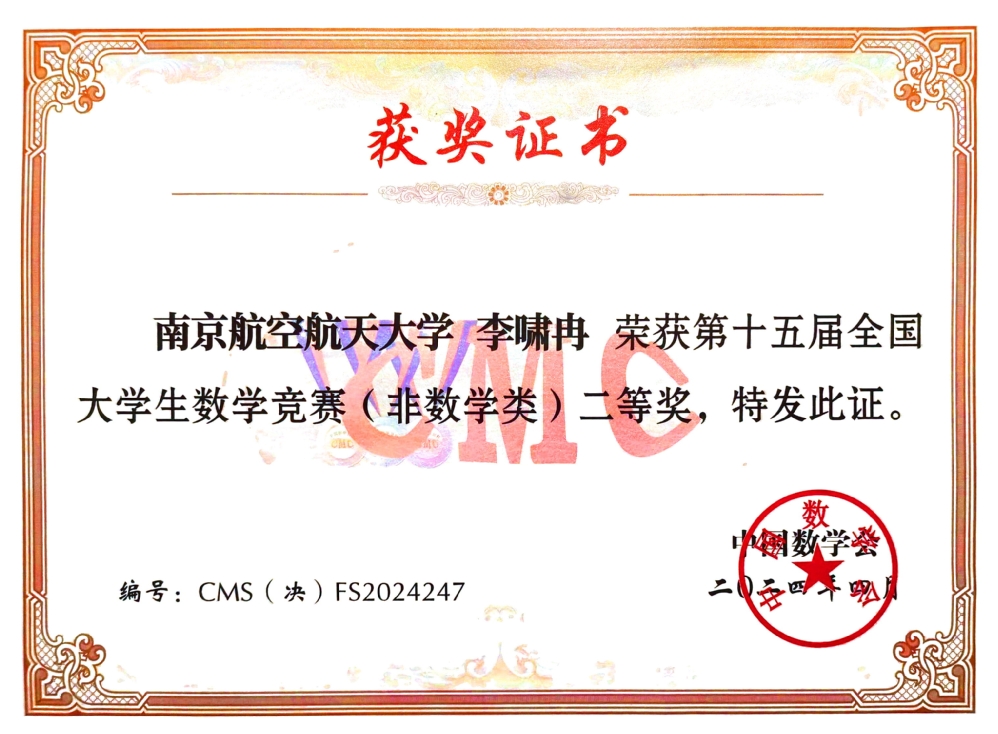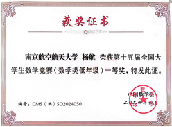 2024年4月19至21日,第十五届全国大学生数学竞赛决赛及颁奖大会在山东大学举行。我校共有4名同学进入决赛,经过激励的角逐,英国上市365应用统计学专业大二学生杨航同学荣获数学类低年级组一等奖,应用统计学专业大三学生左晨昀同学荣获数学类高年级组二等奖;航天学院李啸冉同学和物理学院何健同学分别荣获非数学类二等奖、三等奖。江苏省高校共获得数学类低年级组一等奖4项,我校摘得1项,这也是英国上市365学子首次在该组别中获全国一等奖,取得了突破性成绩。