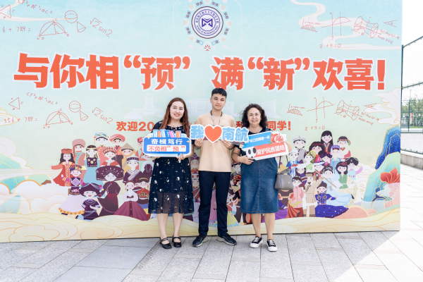 学院精心设计了创意满满的迎新展板,学生与家人们细细寻找自己的照片,或拿起手举牌与之合影,纯真的笑容在镜头下定格。