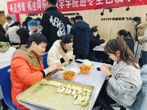 活动中,师生亲手包饺子,共享团圆饭,分享家乡习俗和生活趣事,南山苑食堂内洋溢着其乐融融的节日氛围。