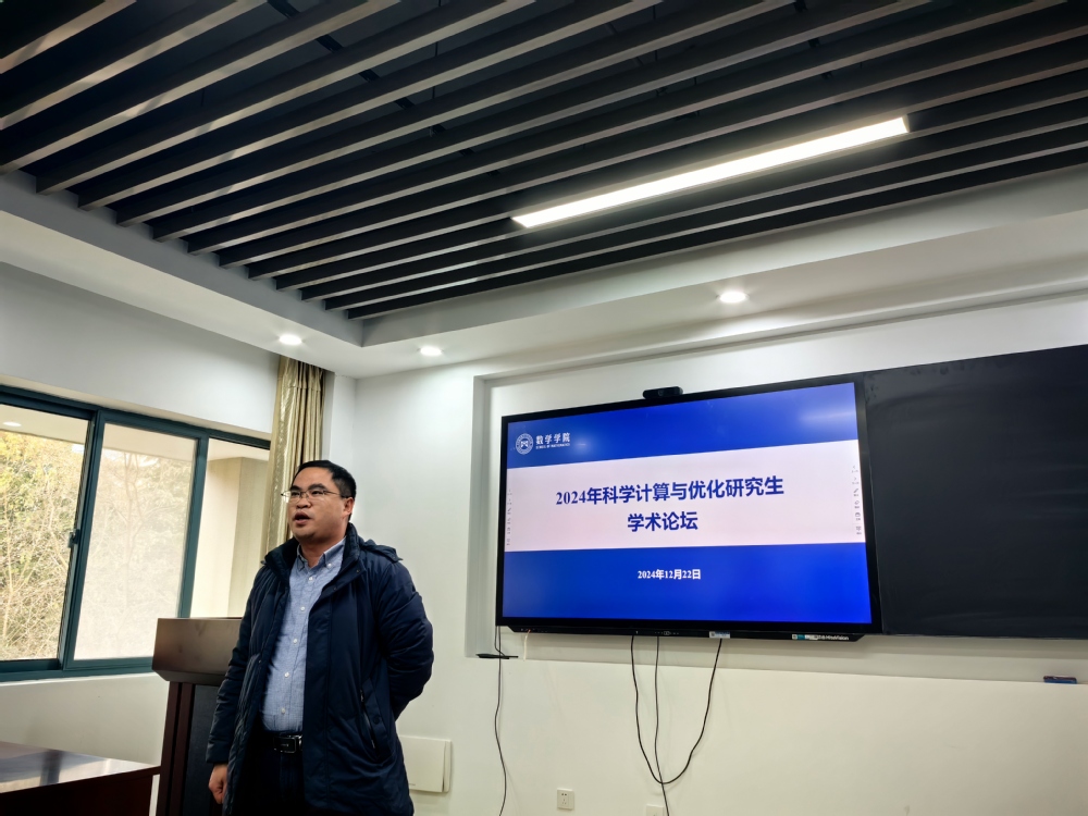 为了促进研究生内部“立足学术、加强交流、锻炼表达、志在提升”,推动研究生科研领域的宽度与深度发展,拓展研究生科学研究的视野和范围,提升研究生问题凝练能力,锻炼研究生的学术表达能力。继2023年顺利举办首届科学计算与优化研究生学术论坛后,在追求学术卓越和深化学术交流的共同愿景下,英国上市365计算科学系第二届“2024科学计算与优化研究生学术论坛”于2024年12月22日上午在英国上市365227视频会议报告厅顺利举办。副院长龚跃政、院长助理潘茂东、计算科学系主任龚荣芳、教师代表以及研究生等20余人参加。论坛由尹晨主持。