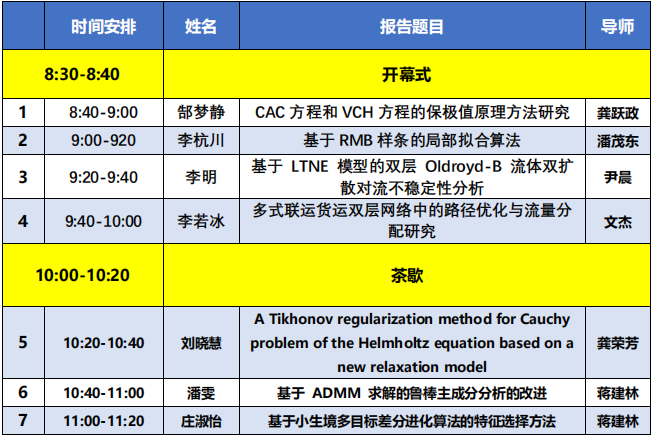7名研究生基于数值分析、计算几何、数学物理反问题、计算流体力学、以及交通运输优化等领域分享了各自的研究成果,报告后的交流互动使参与者们获得了全新的灵感和启发,促进了不同领域间的跨界交流与合作。