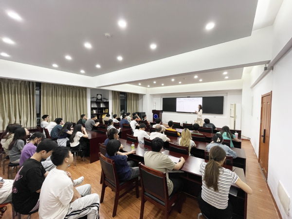2021级优秀学生代表李彦锋、李成、董茜渝、王佳凡结合自身备考经历,分别从复习规划制定、院校特色分析、应试技巧提升等维度进行经验分享。现场气氛轻松热烈,通过问答互动环节深化交流效果,在场学生普遍反映对考研流程有了更清晰的认知框架。