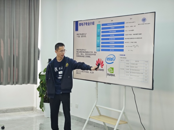 赵振宇以微电子专业的造芯片如同造房子为切入点,系统阐释了微电子科学与工程专业的学科定位:“这是一门融合集成电路设计、半导体物理与光电芯片技术的交叉学科,小到手机芯片,大到卫星通信,都离不开我们的研究领域。” 他结合自身参与的江苏省大创项目,展示了专业核心课程与产业应用的紧密关联,并建议预科生通过学校教务处官网 “培养方案查询” 栏目,对比不同专业的课程设置,看清不同专业的培养侧重点。
