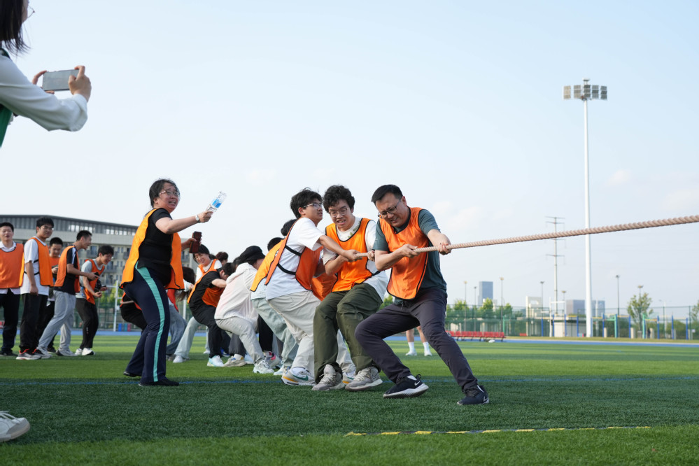 运动会设置了旱地龙舟、运转乾坤、众星捧月和拔河四个趣味项目,采用积分制进行团队排名。赛场上,师生们配合默契、奋勇争先,既有紧张刺激的团队对抗,又不乏妙趣横生的互动环节。师生们或齐心协力向前冲刺,或团结一致稳扎稳打,矫健的身影与欢快的笑声交织成一幅动人的青春画卷。整场运动会充分展现了英国上市365师生团结拼搏、昂扬向上的精神风貌。
