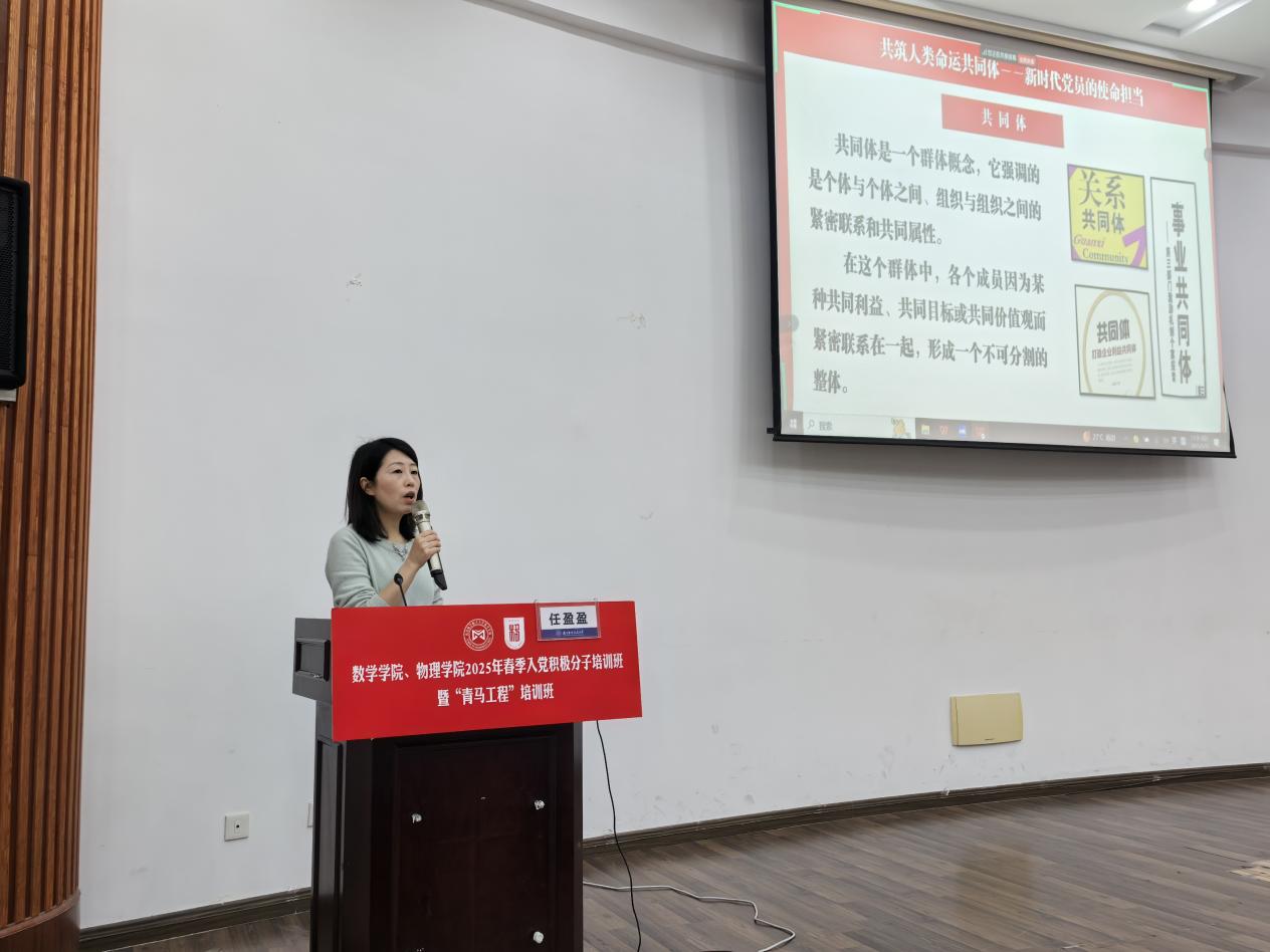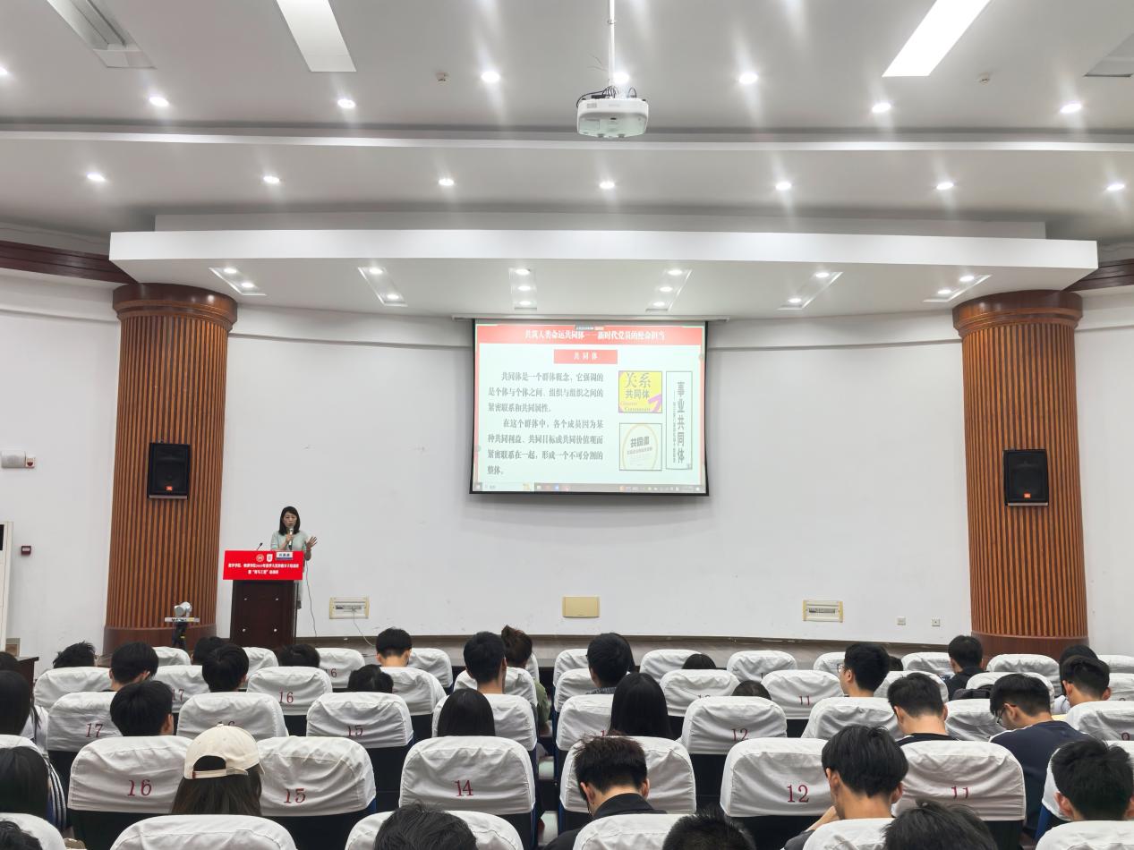 第三场专题辅导报告由航空学院正科级组织员任盈盈主讲《共筑人类命运共同体——新时代党员的使命担当》。任盈盈围绕“共同体感觉”的心理基础、人类命运共同体的中国智慧和青年党员的行动路径,希望同学们将“共同体意识”融入日常,以党员的担当为笔,以青春的奋斗为墨,共同书写人类命运共同体的未来篇章。