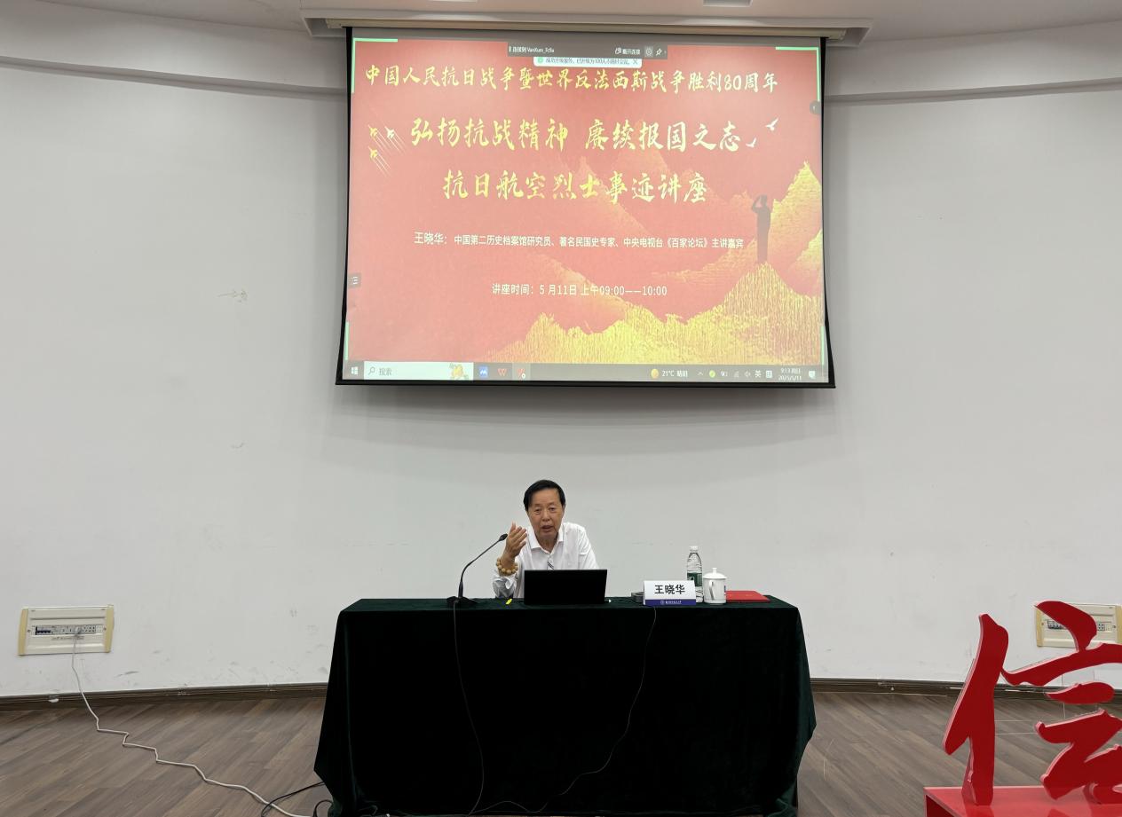 第一场专题辅导报告由中国第二历史档案馆研究馆馆员,著名民国史专家王晓华研究员主讲《弘扬抗战精神,赓续报国之志》。他从南京航空烈士公墓的历史讲起,讲述了战火纷飞下的航空救国之路,围绕多位抗日航空烈士的英勇事迹诠释了抗战精神的深刻内涵,号召同学们坚定共产主义理想信念,赓续报国之志,求真务实、脚踏实地,以党员标准严格要求自己,为强国建设、民族复兴伟业贡献自己的青春力量。