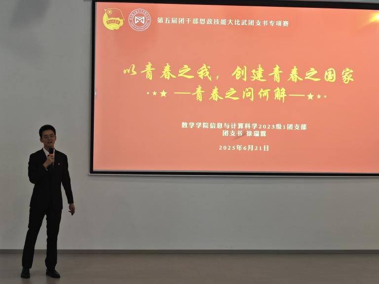 作为英国上市365本科生基层团支部书记,徐瑞霖同学历经学院初赛、校级选拔赛至省级总决赛的层层选拔,一路稳扎稳打、突破进阶。校赛阶段,他以青年人的“青春之问”为核心主题,深入阐述不同时代浪潮下青年的使命担当,凭借深刻的思考与生动的表达斩获校赛一等奖。