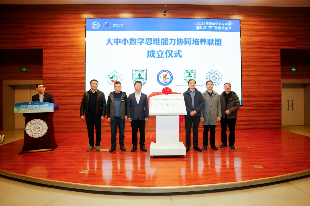 为推进拔尖创新人才、未来“三航”人才的贯通式培养,我校联合4所南京中小学共同成立“大中小数学思维能力协同培养联盟”。刘宇雷、南京郑和外国语学校理事长李海岩、南京师范大学附属中学副校长杨军、南师附中秦淮科技高中副校长龚亮亮、南京五老村小学党总支书记吴玉国、王春武共同为联盟成立揭牌。