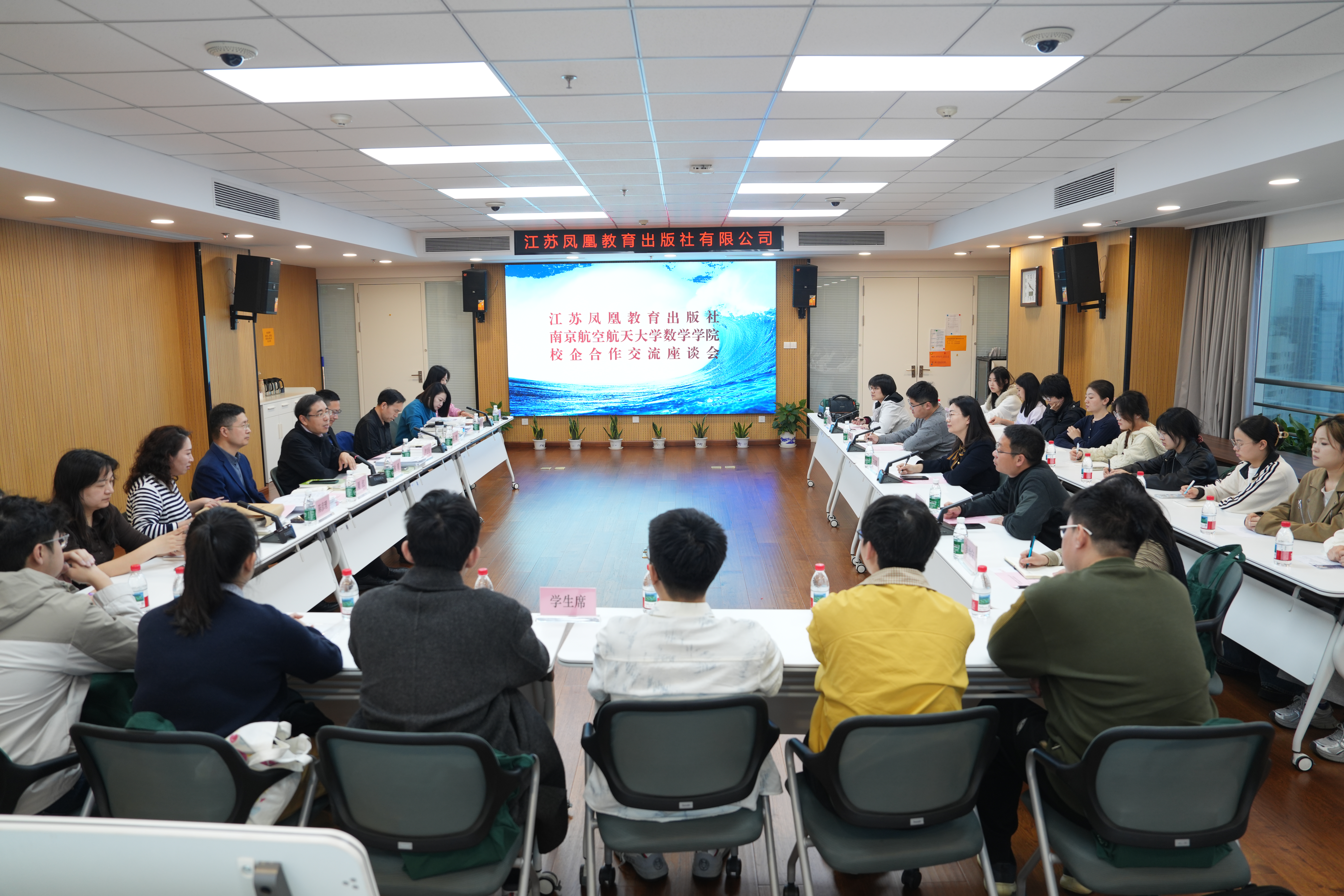 王亚鹏对江苏凤凰教育出版社的热情接待表示感谢,并介绍了学院学科建设、人才培养特色、专业发展优势、毕业生就业去向等情况,希望以此次对接为抓手,进一步深化与出版社的全方位合作,为学生搭建优质实习实践平台,为企业输送更多高素质专业化人才。