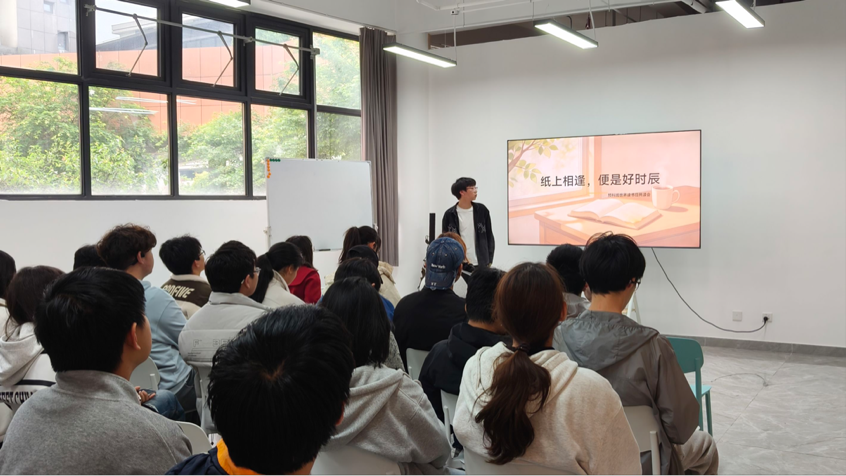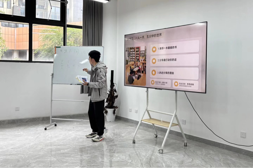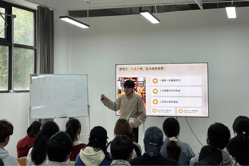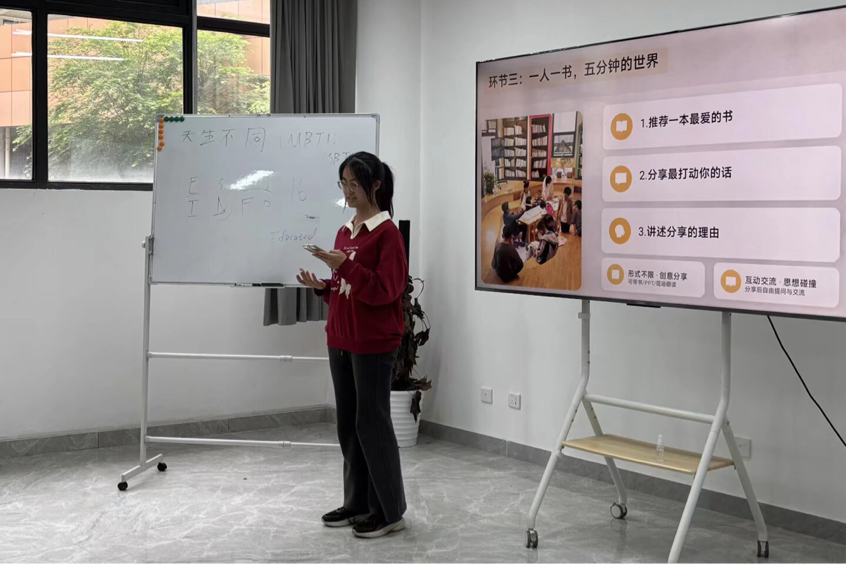 随后进行的“一人一书”分享是本次活动的重点。三位同学各自推荐了一本对自己有特殊意义的书籍,并简要讲述了阅读感受。不同的书籍展现了阅读世界的广阔,也引发了在座同学的兴趣。