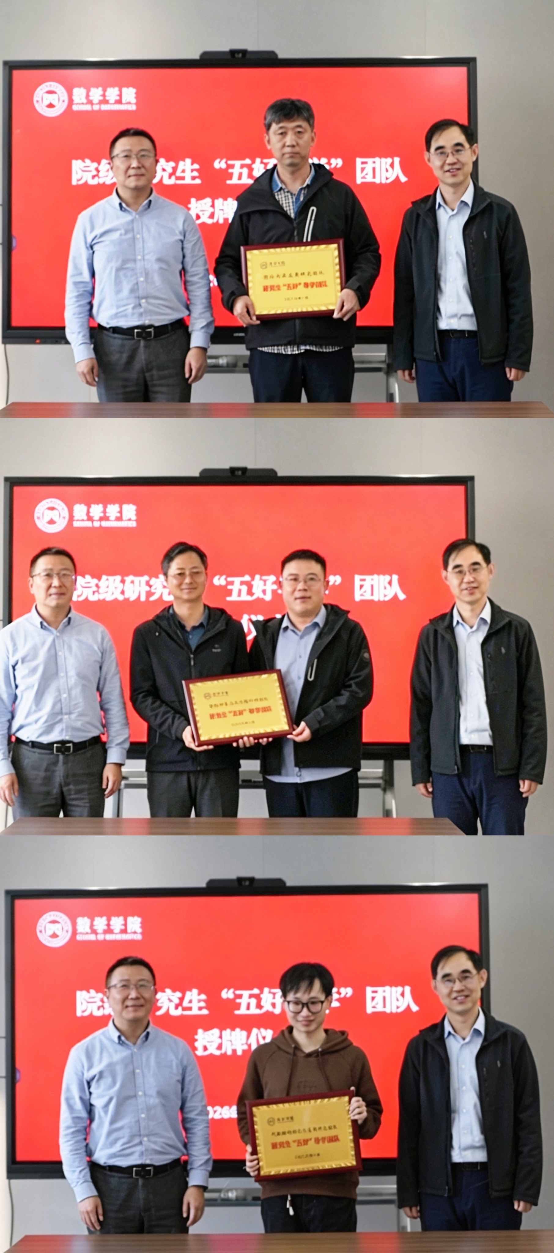 2025年度,学院有序推进优秀科研导学团队培育建设各项前期工作,经过自主申报、综合评审、择优遴选等流程,最终推荐“流体力学数值方法团队”入选校级五好导学团队,“代数编码理论与应用研究团队”“图论与其应用研究团队”“智能计算与反问题科研团队”3支团队立项为院级五好导学团队。培训会现场,宋凯、张跃共同为院级“五好导学”团队授牌。